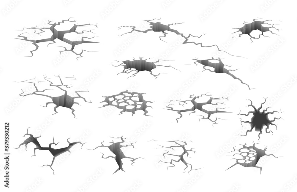 Earthquake Ground Crack Hole In Floor With Cracking And Earth Destruction Cracks Ruined Wall With Fracture Structure Damage Breaks Texture Effect Vector Set On White Background Stock Vector Adobe Stock